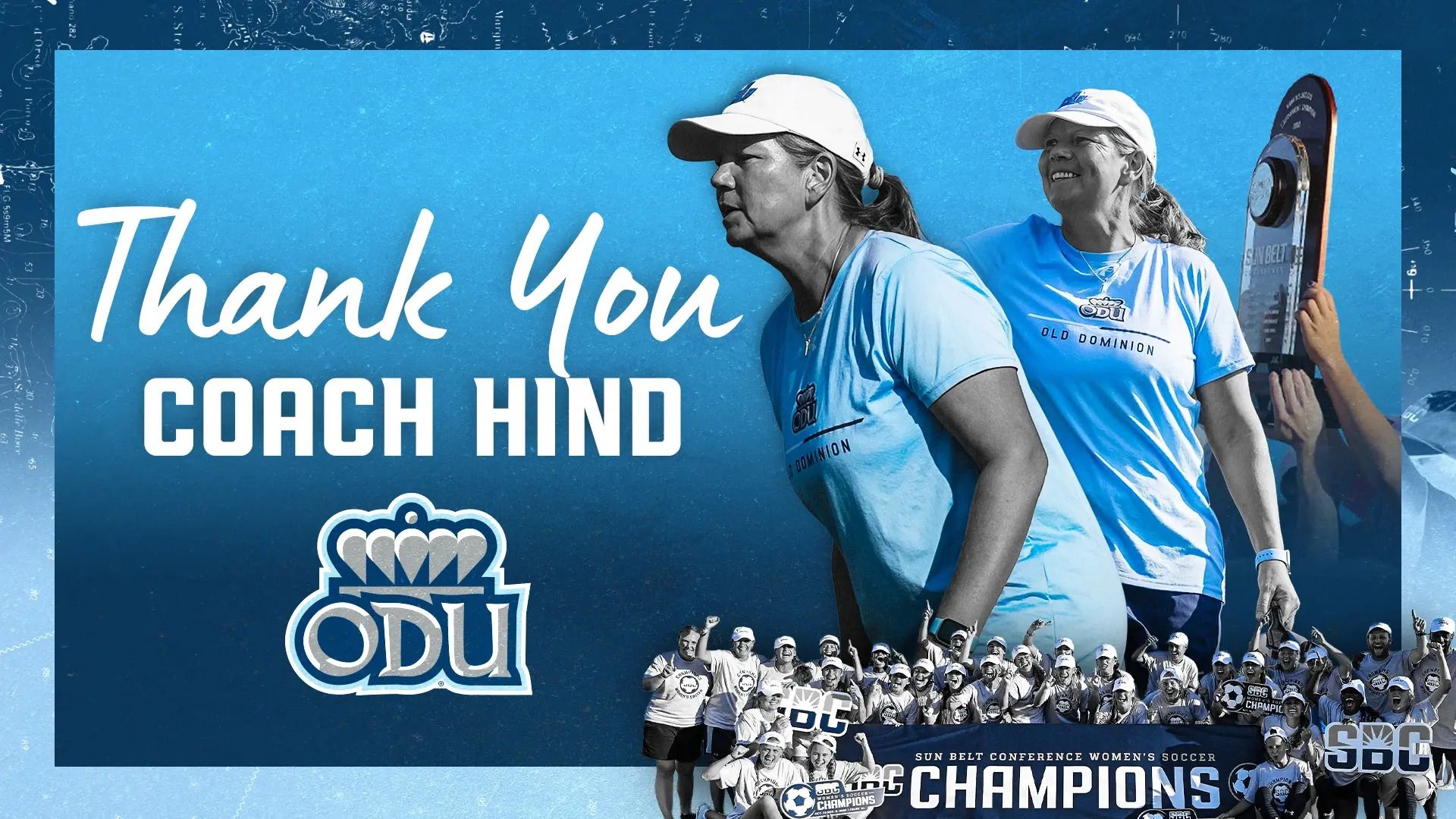 Hind inherited a team that finished 1-13-3 in 2013 and turned ODU into a nationally prominent program that won three conference tournament championships, a regular-season conference title and two Sun Belt Conference East Division crowns in the last five years.